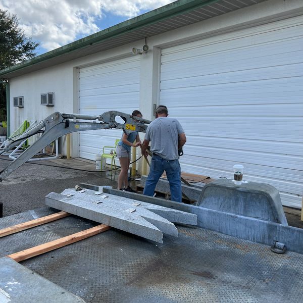 Large eastern gray granite pieces were cut at an angle on each edge so that they would be able to form the star shaped border of the Gold Star Family Garden.